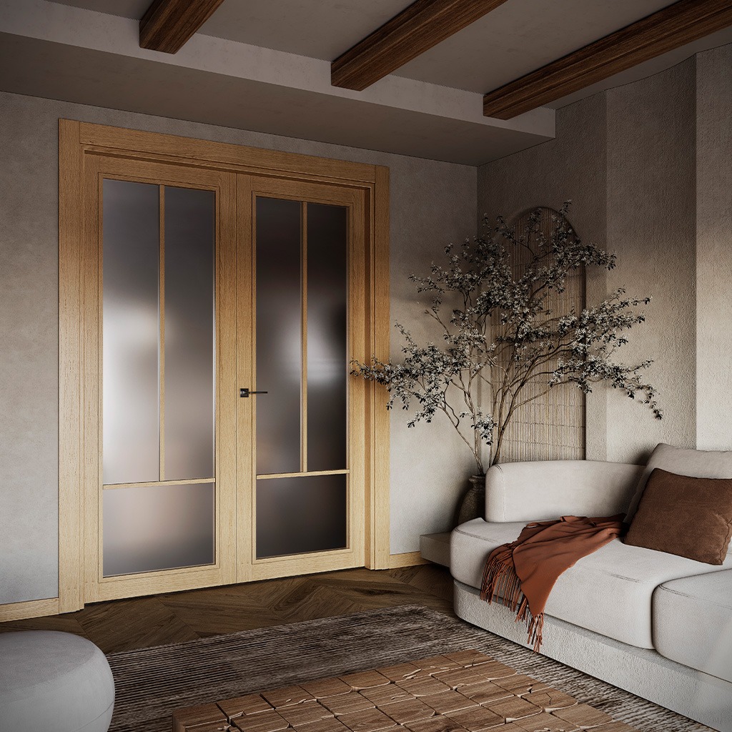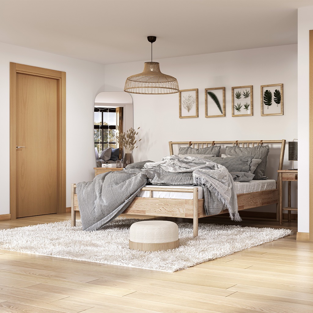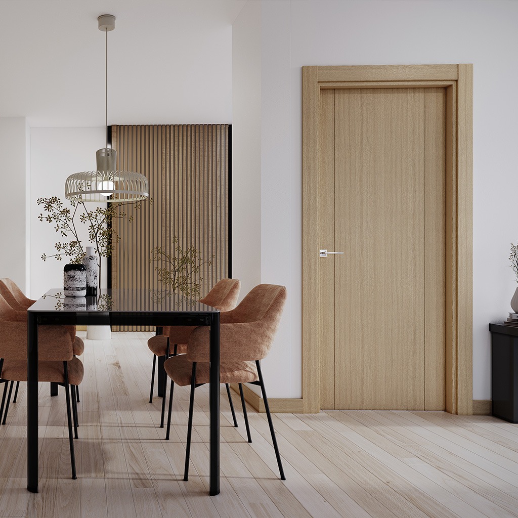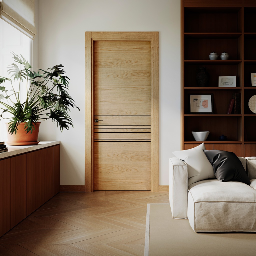 Las puertas de madera destacan por su durabilidad excepcional y sus propiedades naturales de aislamiento térmico y acústico, aumentando el confort en el hogar. Ofrecen calidez y elegancia a cualquier espacio. Con una amplia variedad de acabados, vetas y tonalidades, se adaptan a estilos clásicos y contemporáneos, permitiendo la personalización con detalles únicos.